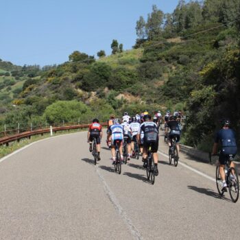 IL PERCORSO: lo start e l’arrivo sono davanti all’hotel principale: dopo la partenza ci sono 12 km di pianura che portano al circuito vero e proprio che inizia quando si svolta per andare alla frazione L’Annunziata: iniziano dei saliscendi con lunghi tratti di veloce discesa fatti su strade interne con poco traffico che passano al ristoro posto davanti alle vecchie Carceri di Castiadas. Dopo aver chiuso la seconda volta il circuito, i ciclisti rifanno i dodici chilometri iniziali ed andranno al traguardo. L’esperienza fatta nel 2025 dice che è assai probabile che il quarto d’ora esistente tra le due partenze non impedirà ai più forti del GranGiro di raggiungere e superare i meno forti del MedioGiro: questo non sarà un problema e sarà anzi cosa utile agli atleti più lenti che possono sperare di sfruttare almeno in parte il passaggio dei forti.
